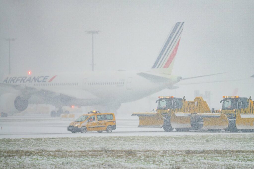 أُلغيت نحو 100 رحلة جوية صباح الأربعاء في مطار رواسي شارل ديغول و40 رحلة من مطار أورلي في باريس بسبب الثلوج، بحسب ما أفاد وزير النقل الفرنسي فيليب تابارو عبر قناة “سي نيوز” التلفزيونية.