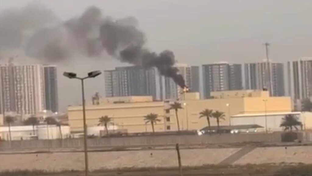 وفجر السبت، شاهد صحافي من وكالة فرانس برس دخانا أسود يتصاعد فوق السفارة الأميركية الواقعة في المنطقة الخضراء في بغداد والتي تضم بعثات دبلوماسية ومؤسسات دولية وهيئات حكومية.