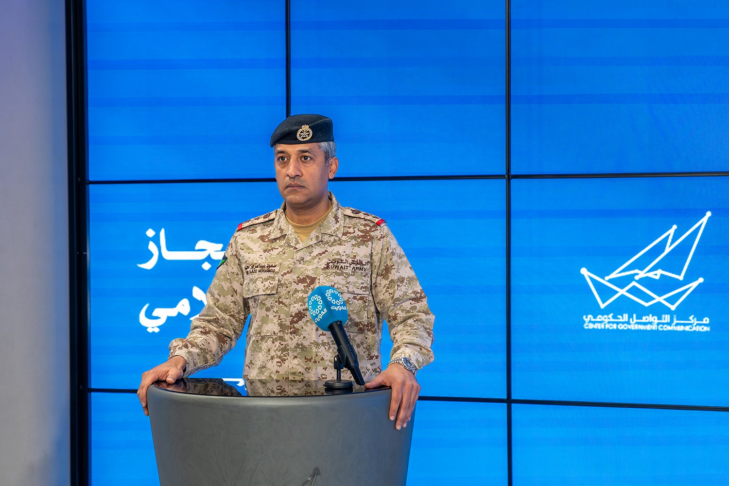 المتحدث باسم وزارة الدفاع العقيد الركن سعود العطوان: رصدنا وتعاملنا مع 9 صواريخ باليستية و4 جوالة و31 طائرةً مسيّرةً خلال الـ24 ساعة الماضية – أكد خلال الإيجاز الإعلامي وقوع أضرار مادية جسيمة واندلاع حرائق متفرقة دون إصابات بشرية جراء العدوان بطائرات مسيرة استهدفت عددًا من المنشآت الحيوية في البلاد – أهاب بالجميع عدم تداول الصور أو المقاطع المصورة من المواقع المستهدفة وعدم الانسياق وراء الشائعات أو التعاطي والجدل مع الحسابات الوهمية في مواقع التواصل